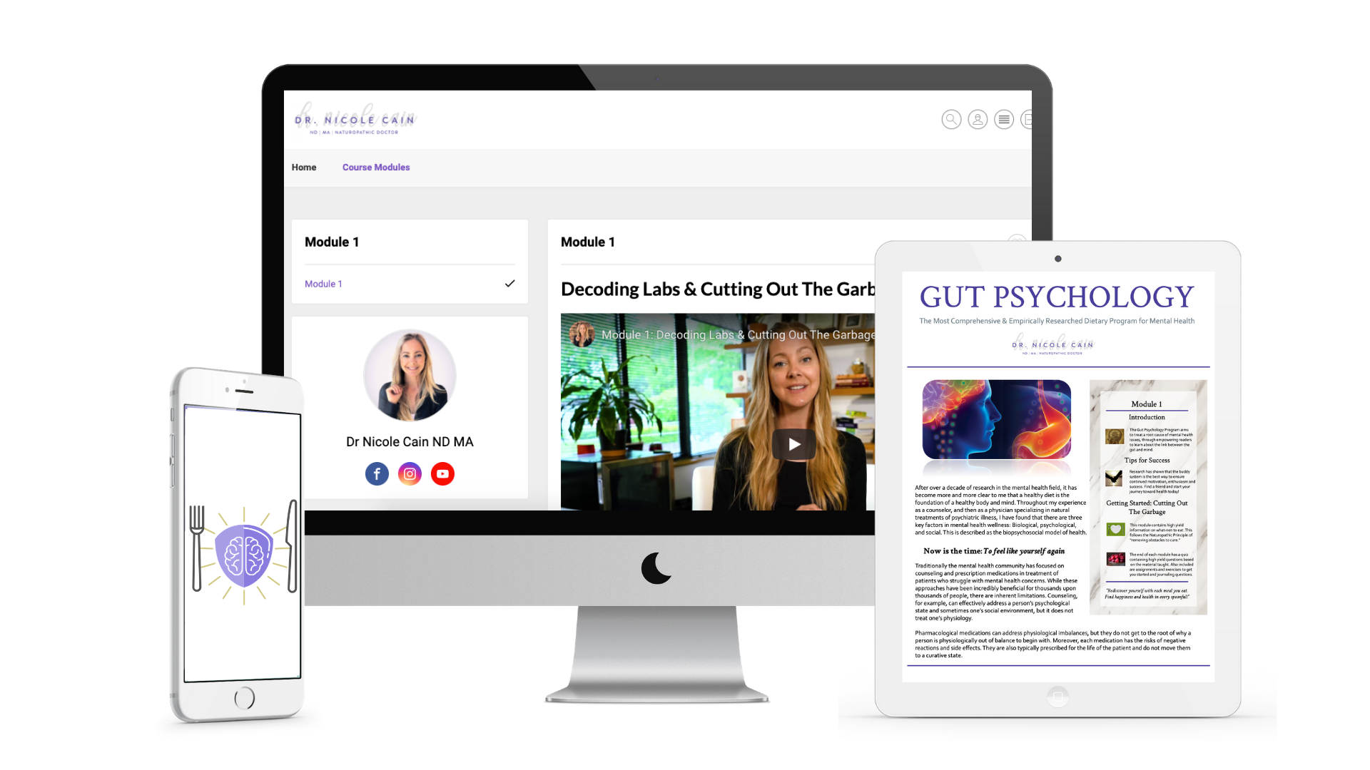 Don't wait to improve your gut health, overall health and mood with Dr. Cain's Gut Psychology Course.